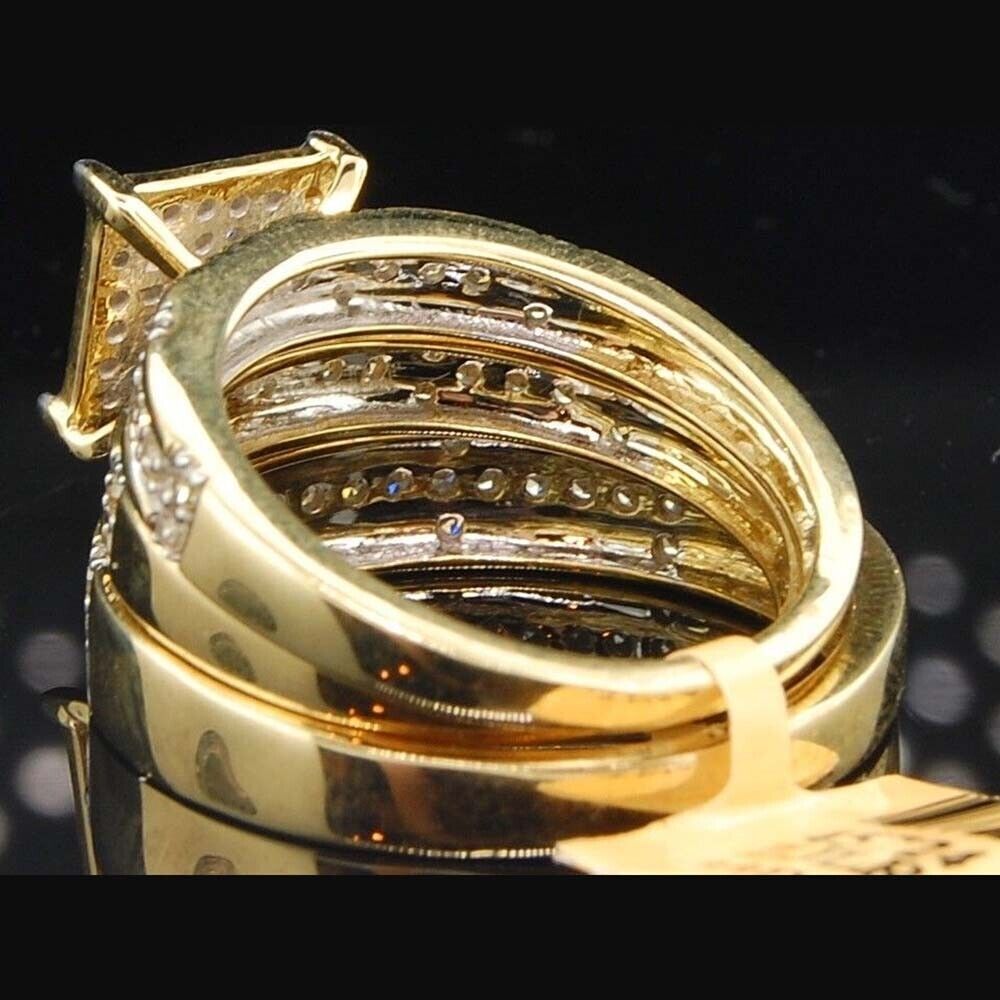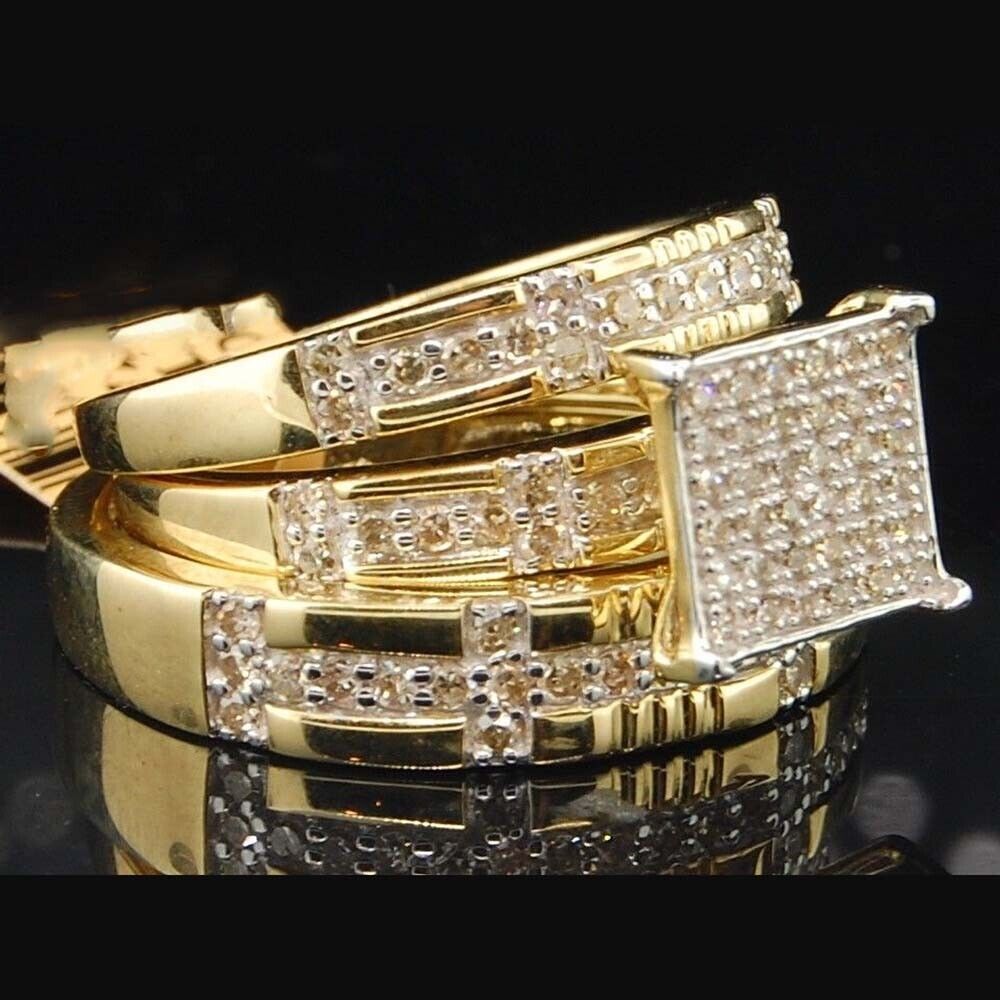 1 Ct D/FL Real Moissanite 14K Yellow Gold Plated Wedding His & Her Trio Ring Set