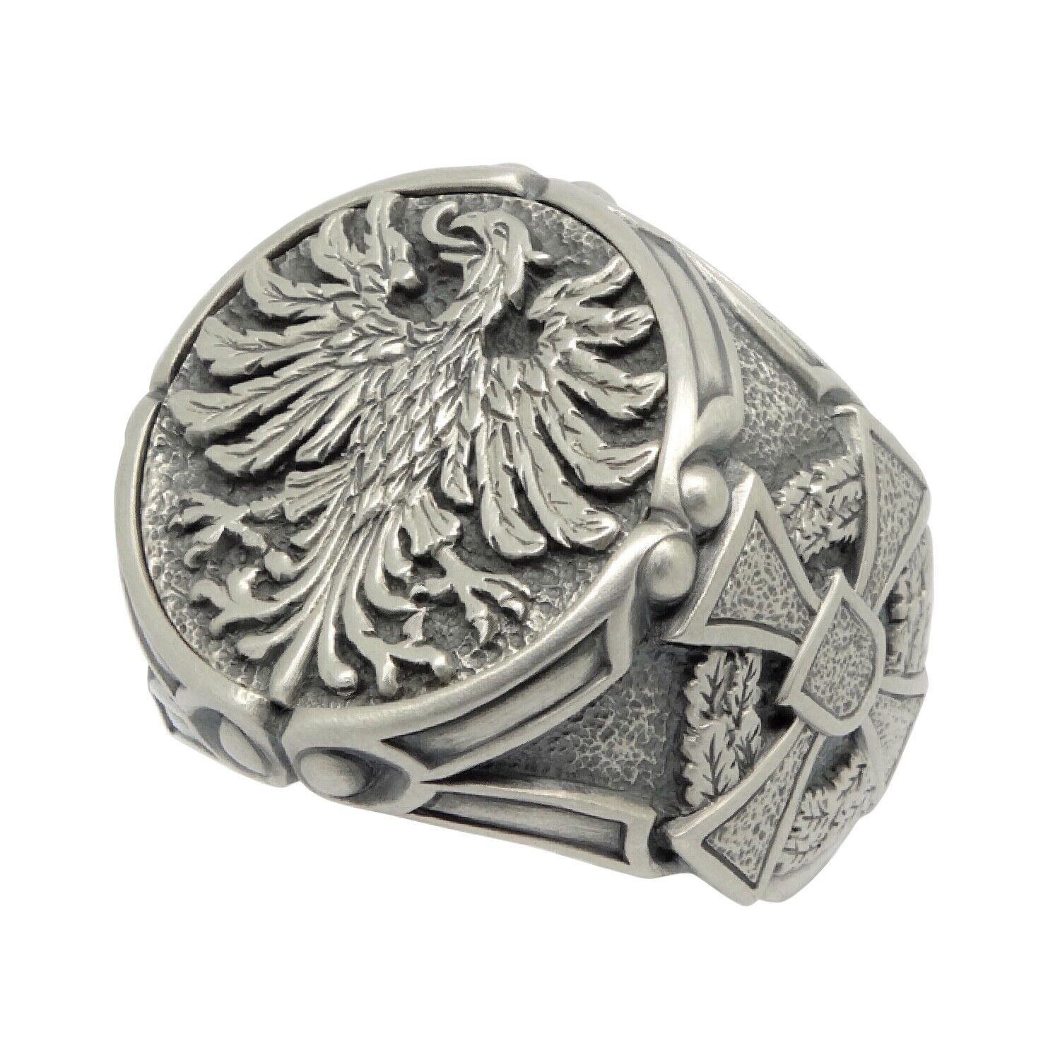 SOLID BACK German Eagle Sterling Silver 925 Men's Ring