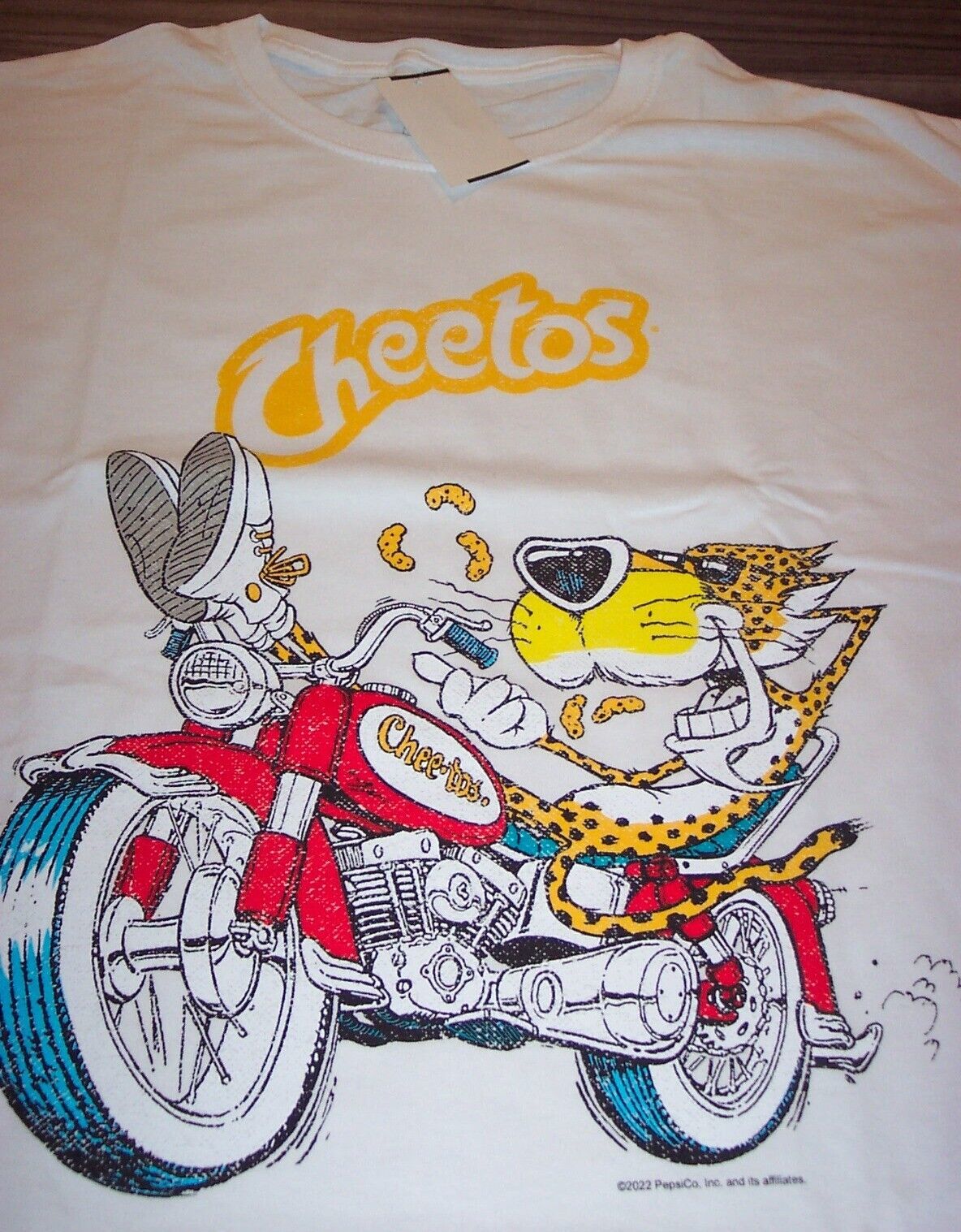 This is a Vintage Style CHEETOS Chester Cheetah Motorcycle T-shirt. It is a size LARGE, and it is NEW with the tag. It is 22 inches from armpit to armpit and 30 inches in length. Combine auctions to save on shipping. DAD