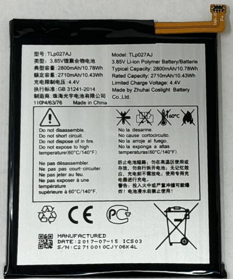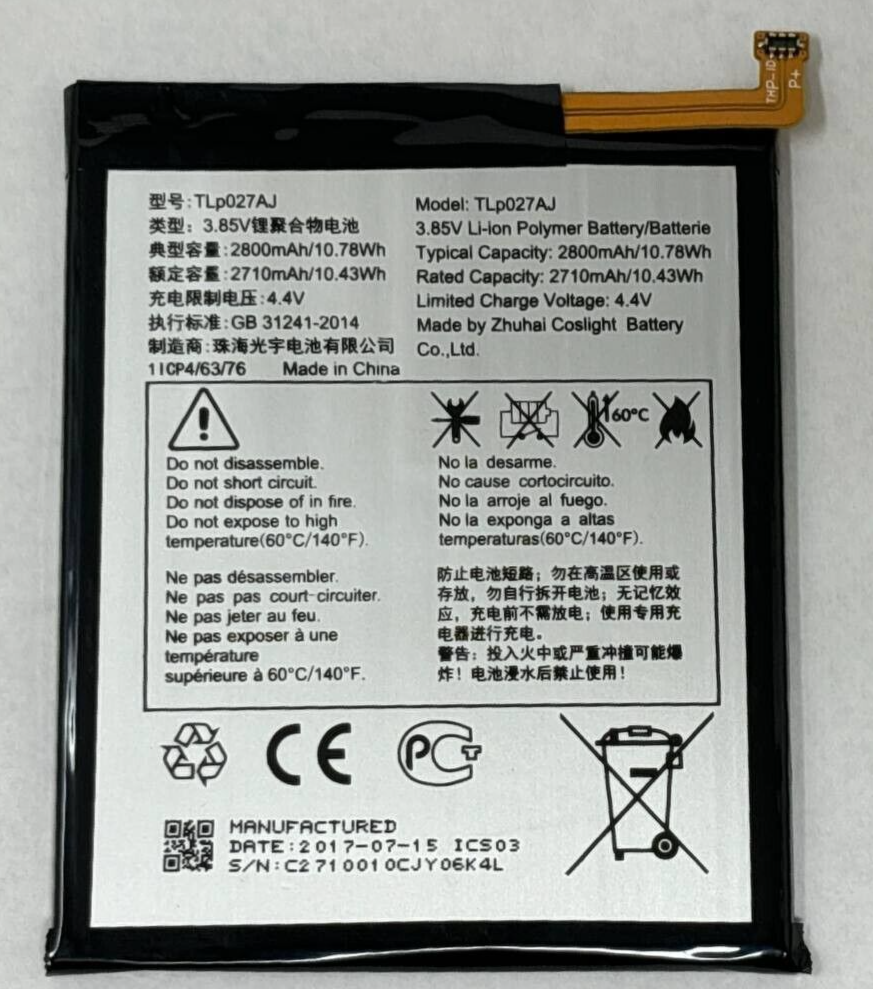 Battery TLP027AJ Replacement For Alcatel PulseMix 5085C One Touch A5 OT 8085D
