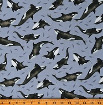 Cotton Orcas Killer Whales Ocean Polar Plungers Fabric Print by the Yard D688.87