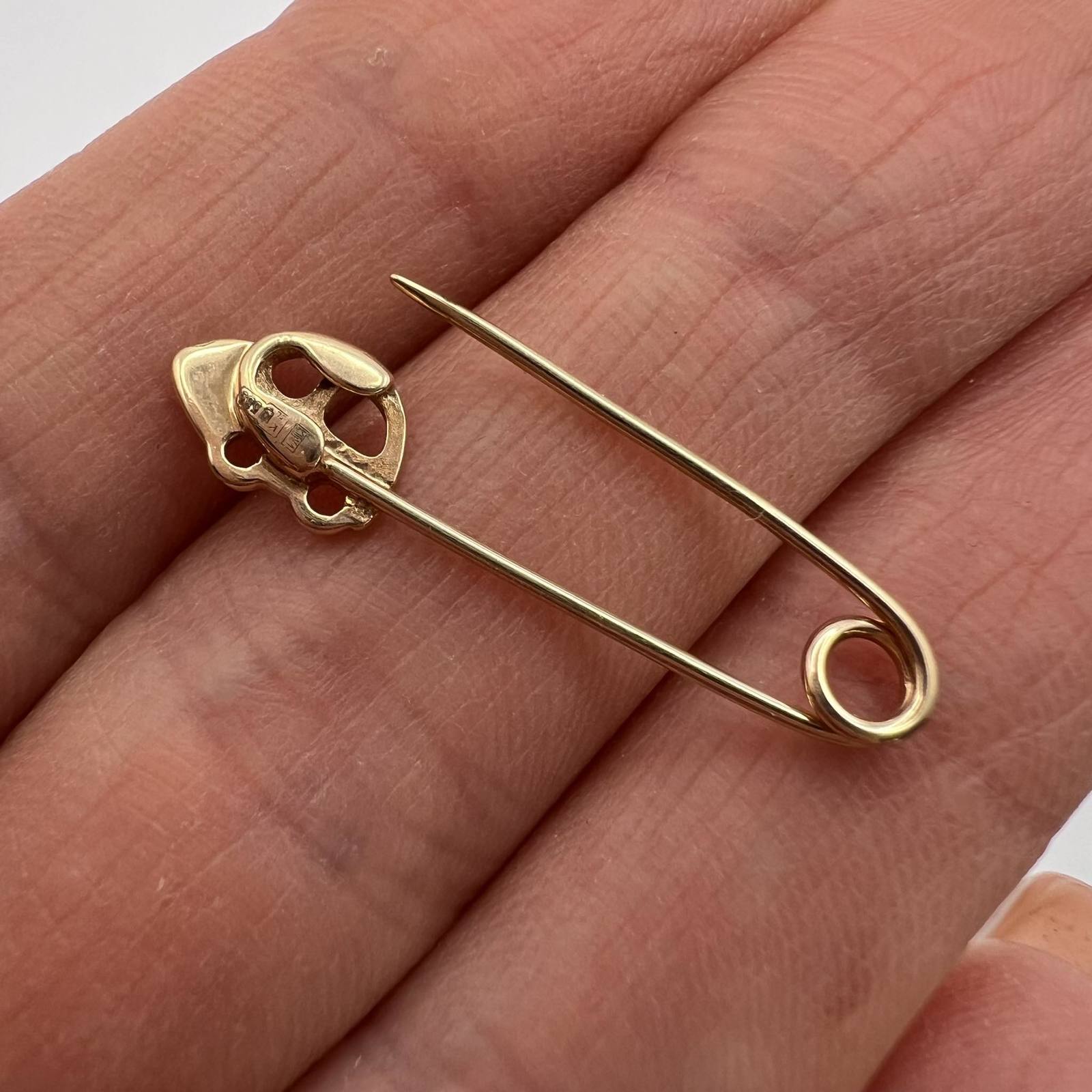 Vintage Rose Gold 585 14K Women's Jewelry Safety Pin Brooch Needle Car 0.7 gr