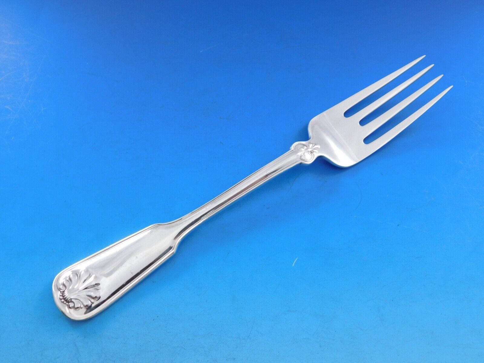 Shell Thread was first introduced by Tiffany in 1905. Its design is typical of patterns made in England during the long reign of King George III. The raised-border edges, which accentuate the classic ?fiddle? shape of the pattern, along with the superbly balanced shell motif give Shell Thread the great advantage of being at home practically anywhere. This versatility and the beauty of Shell Thread make it Tiffany's most popular classic pattern.