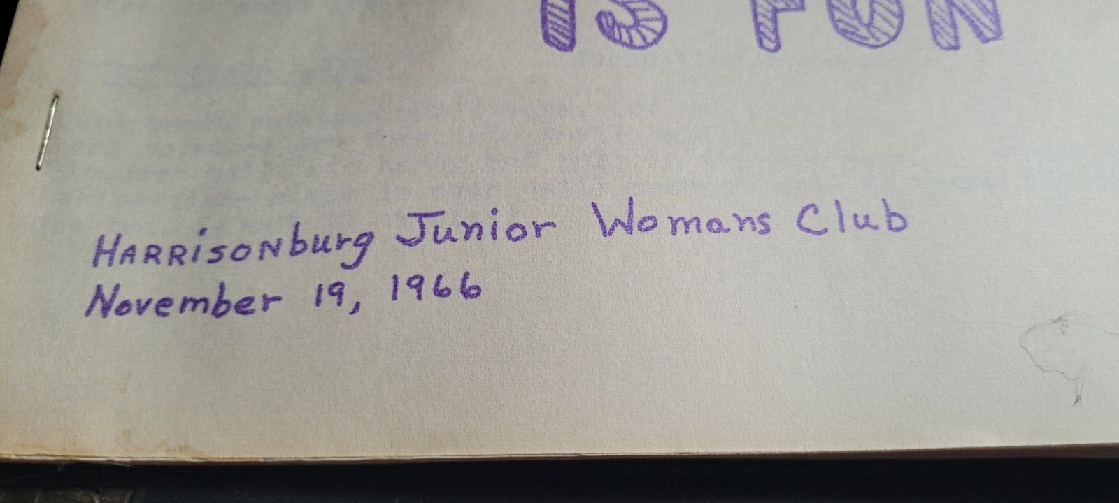 Vintage Handmade Cookbook Cooking is Fun Harrisonburg, Virginia Jr. Woman's Club