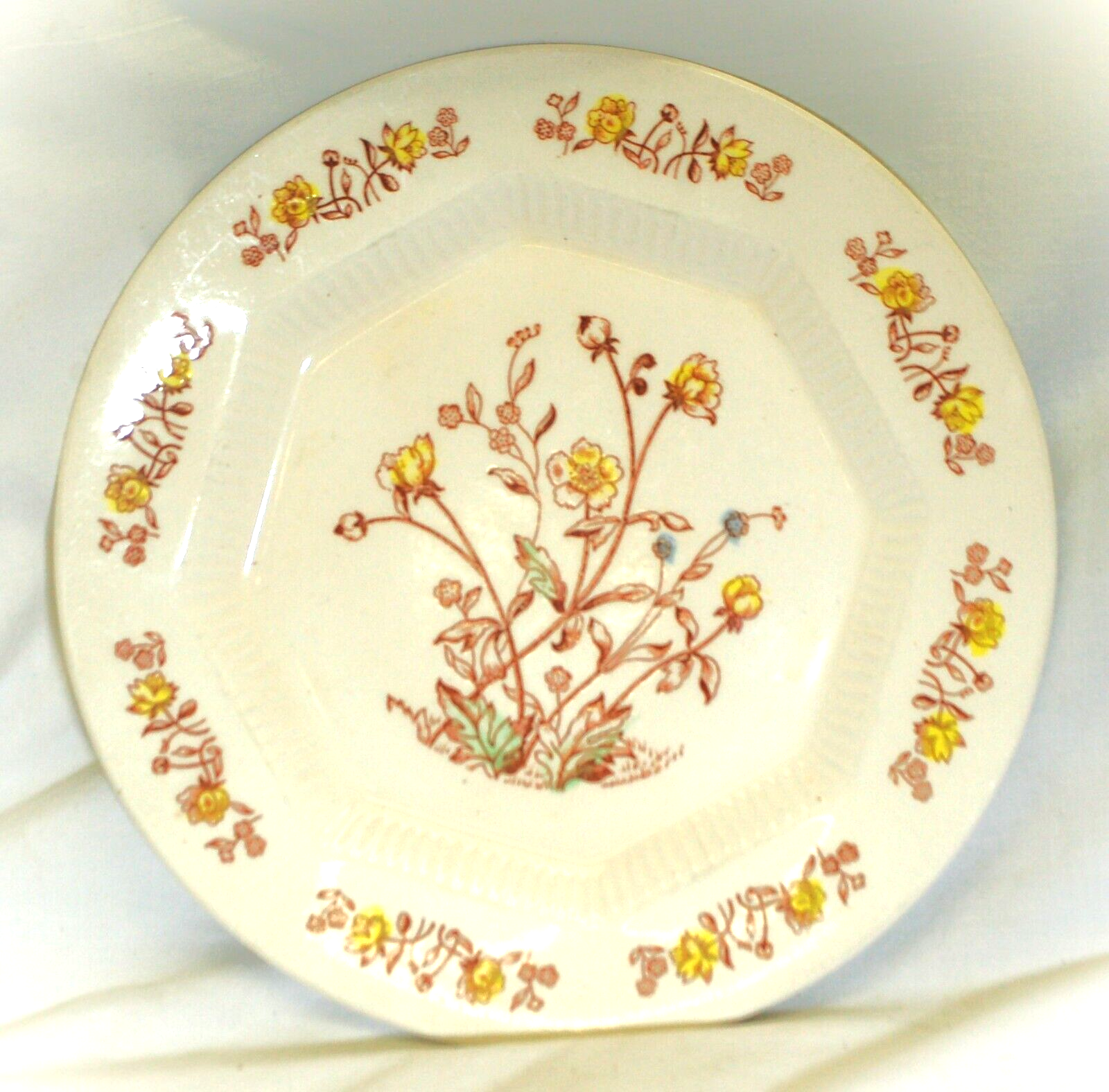 Prairie Flower Nasco Salad Plate Brown &Yellow Floral Rim & Center Japan