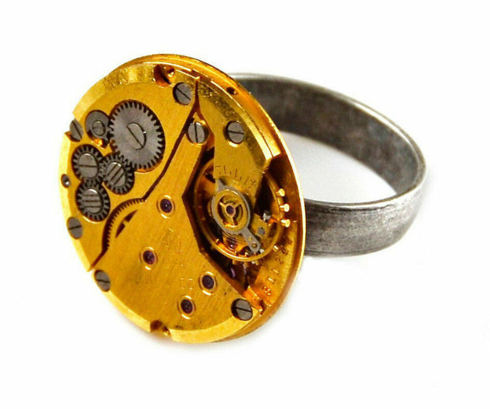 Steampunk Adjustable Statement Ring - Genuine Watch Movement - QHG1