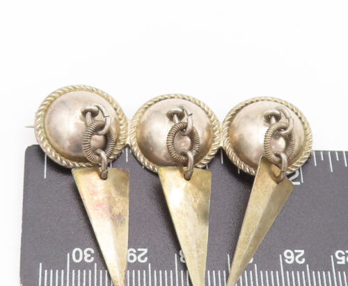 NORWAY 925 Sterling Silver - Vintage Domed Dangling Triangle Brooch Pin- BP10406