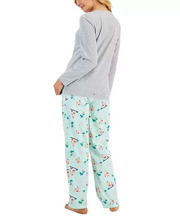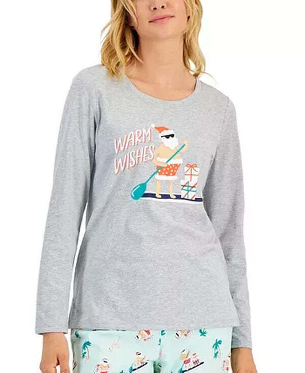 Santa turns surfer dude in this fun set from Family Pajamas, a comfy top with a whimsical graphic and matching printed bottoms.