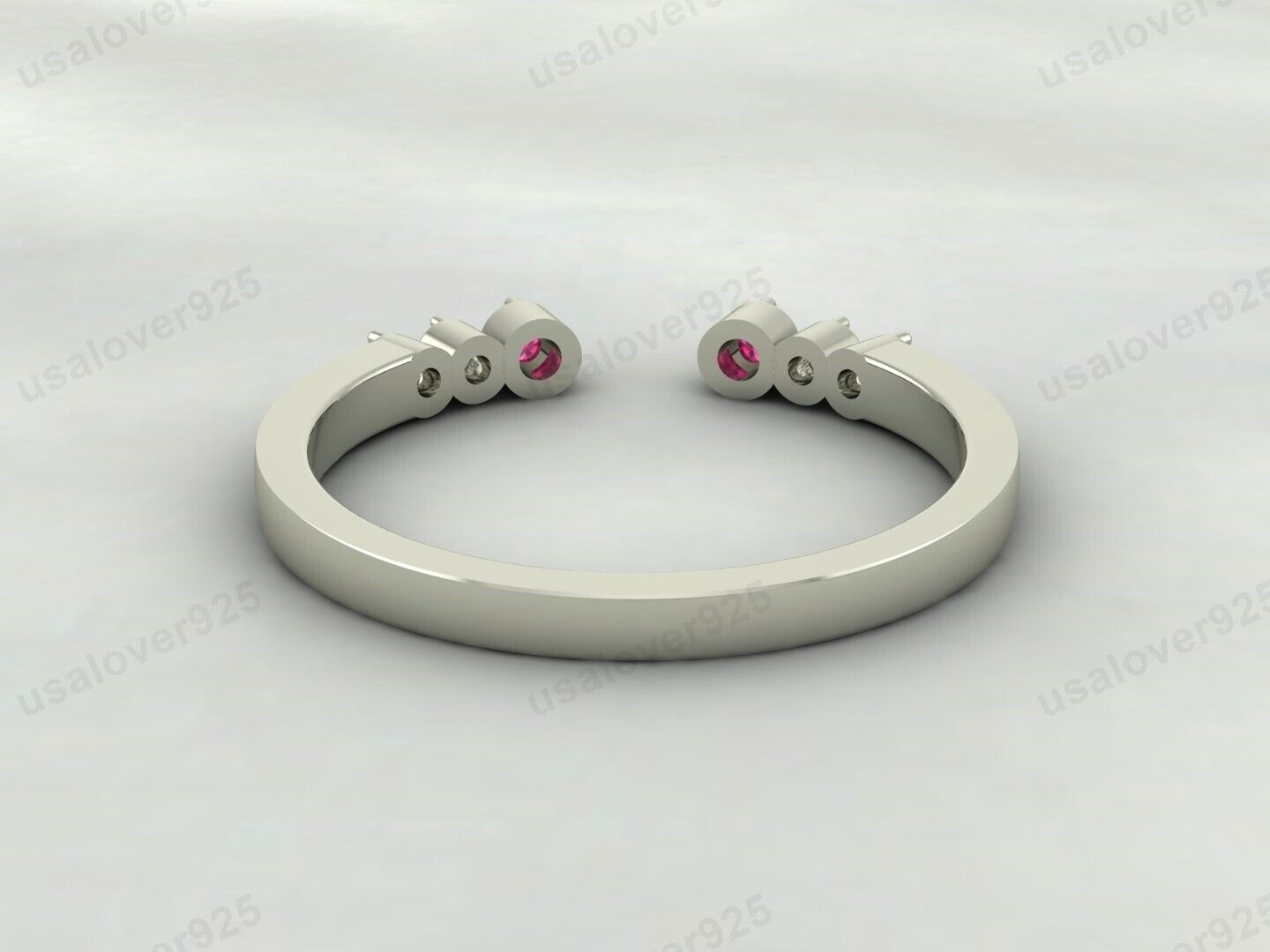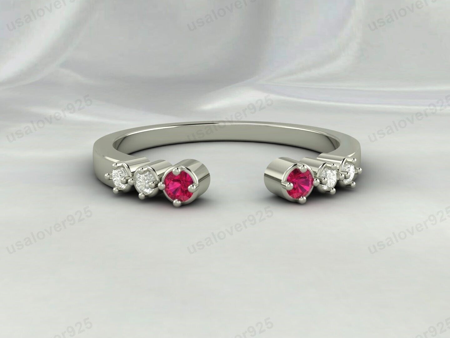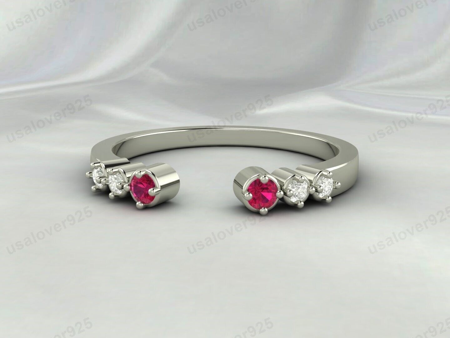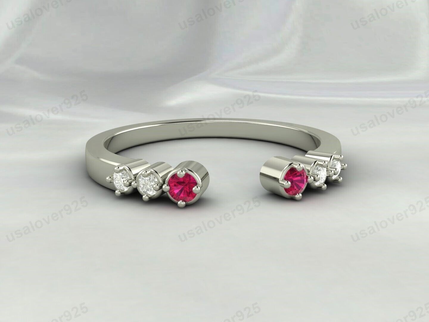 Ruby Gemstone 925 Sterling Silver Handmade Dainty Women Open Band Ring Jewelry