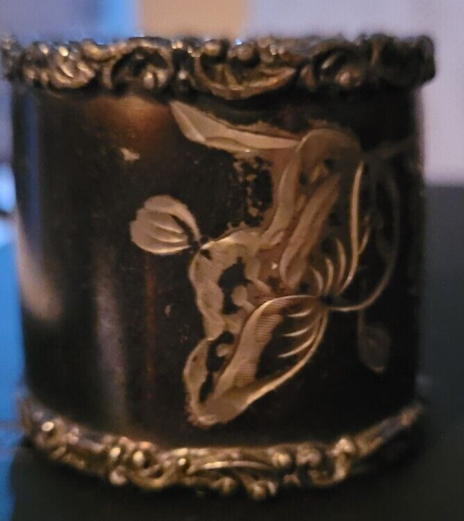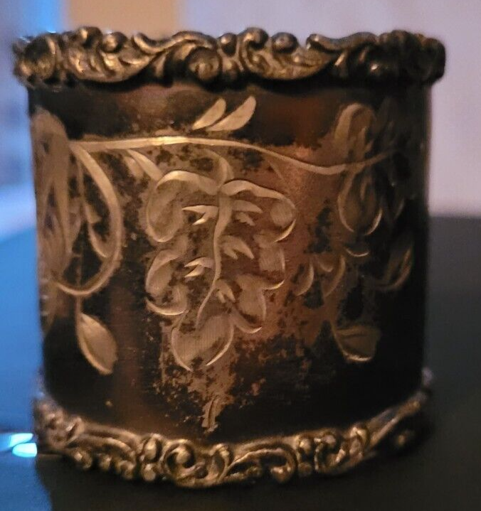 These napkin rings are in good used vintage condition. The one shows it is a little bent, as seen in the pictures. There are no markings on any of them. They would make a nice addition to a collection or for use. no marks. So believe to be plated.
