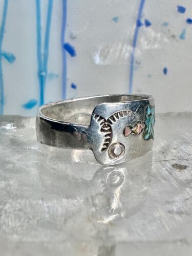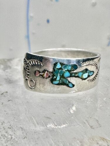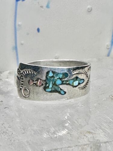 Phoenix ring turquoise coral chips southwest band size 6.75 sterling silver women