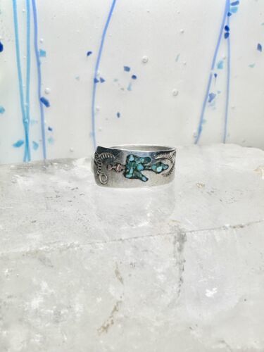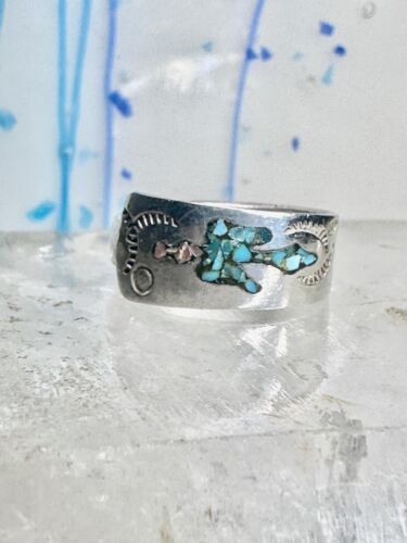 Phoenix ring turquoise coral chips southwest band size 6.75 sterling silver wome