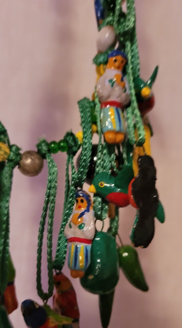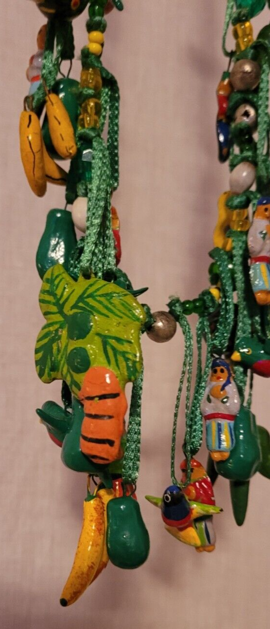 13 Inch Spanish Mexican Necklace Bananas Birds People Peppers Trees Plastic Bead