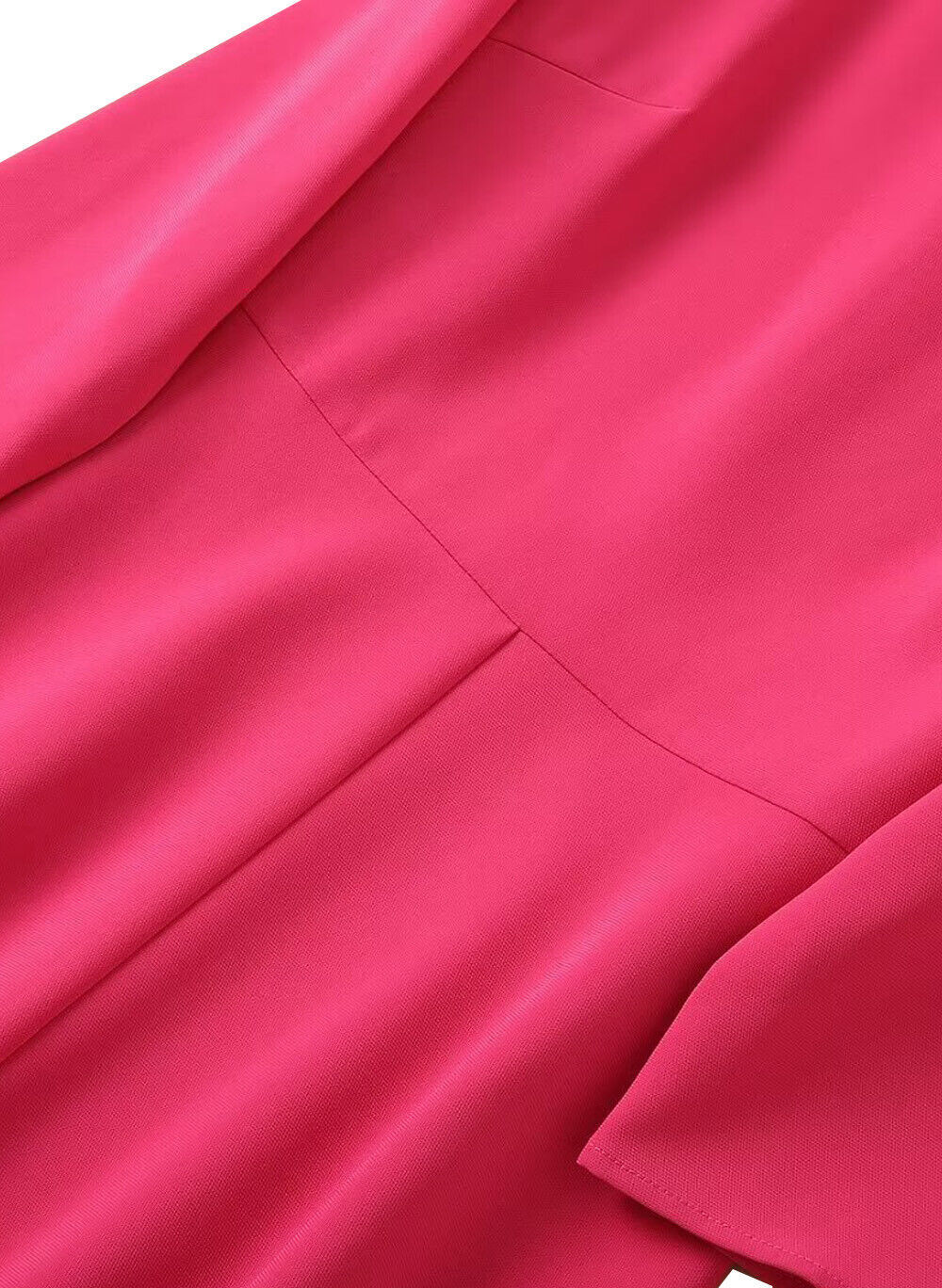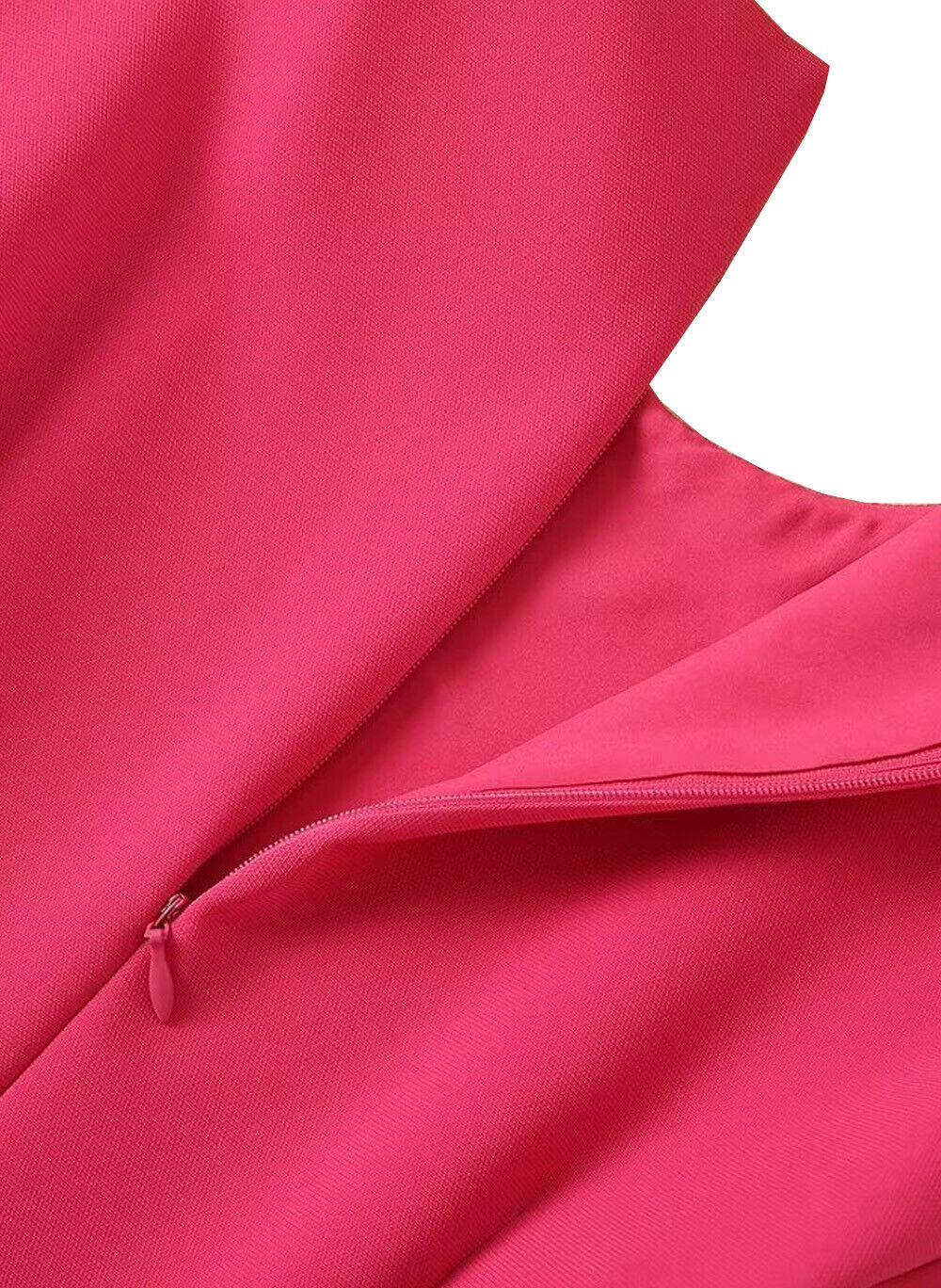 Queen Letizia Inspired Fuchsia Pink Fit-and-Flare Midi Dress with 3/4 Sleeves OZ