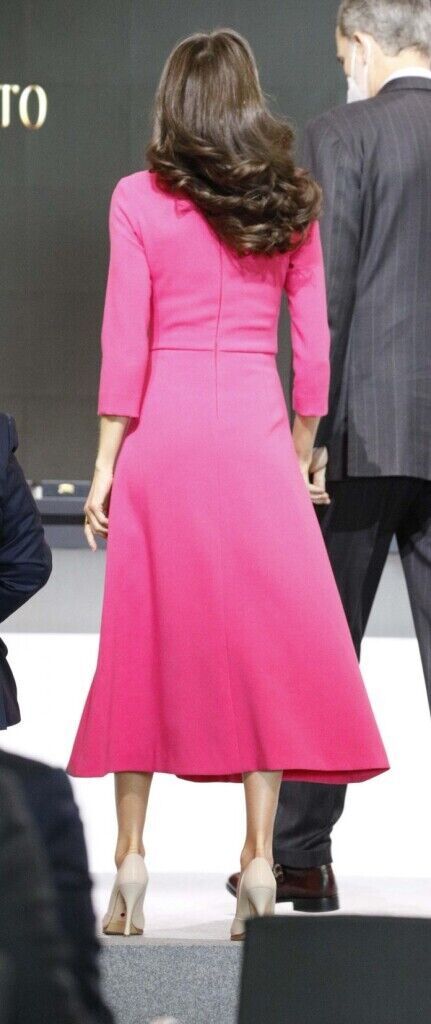 Make a statement and turn heads at your next event with our stunning fuchsia midi dress inspired by Queen Letizia's impeccable style.