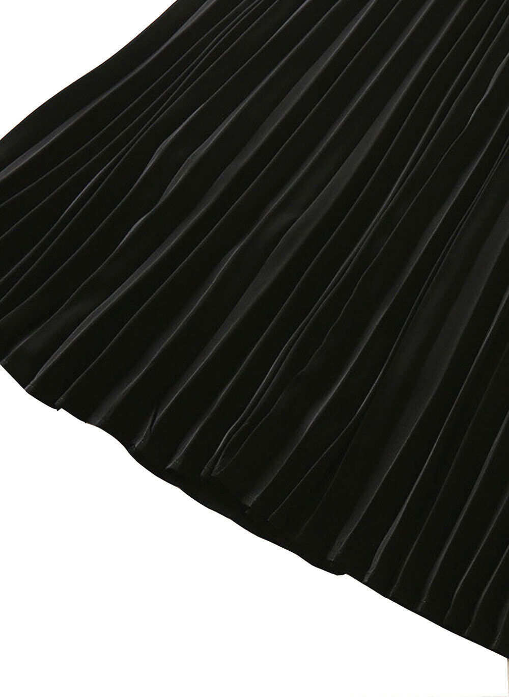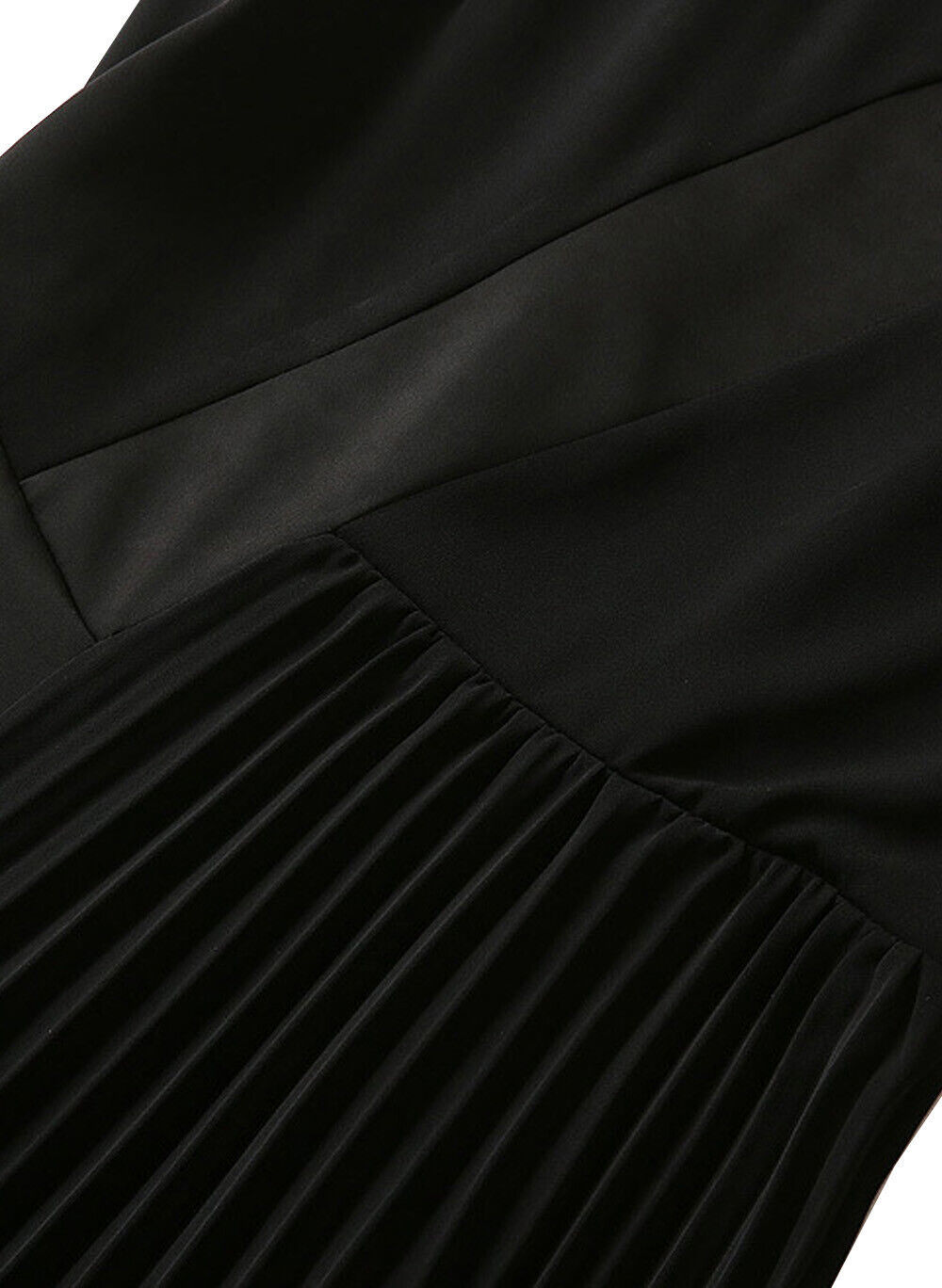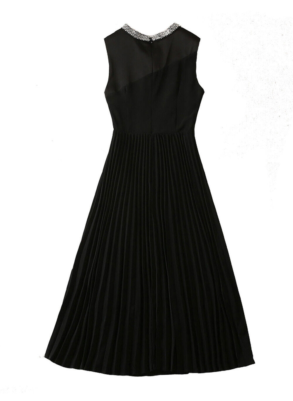 Queen Letizia Inspired Sleeveless Embellished High-neck Black Pleated Dress OZ