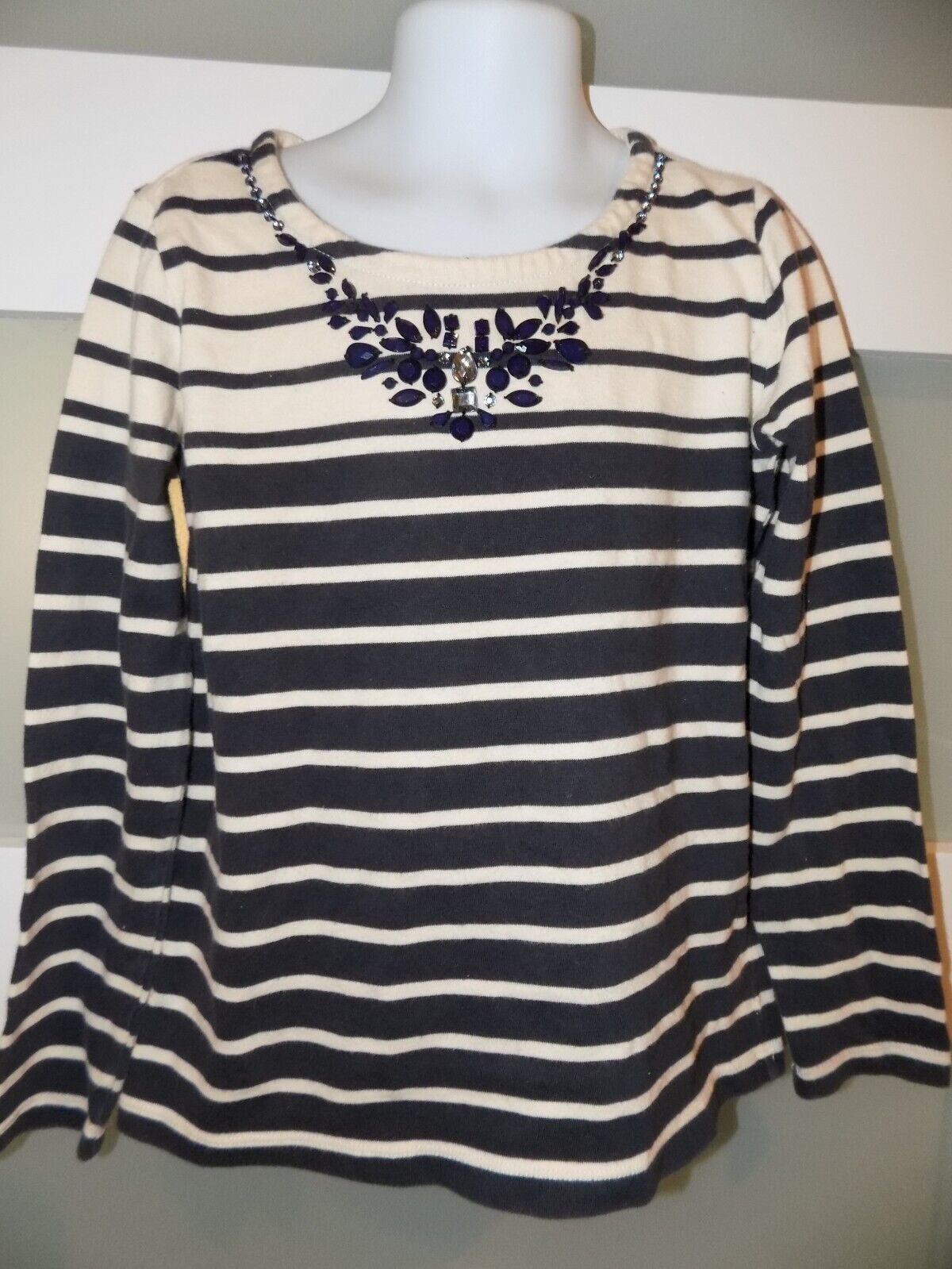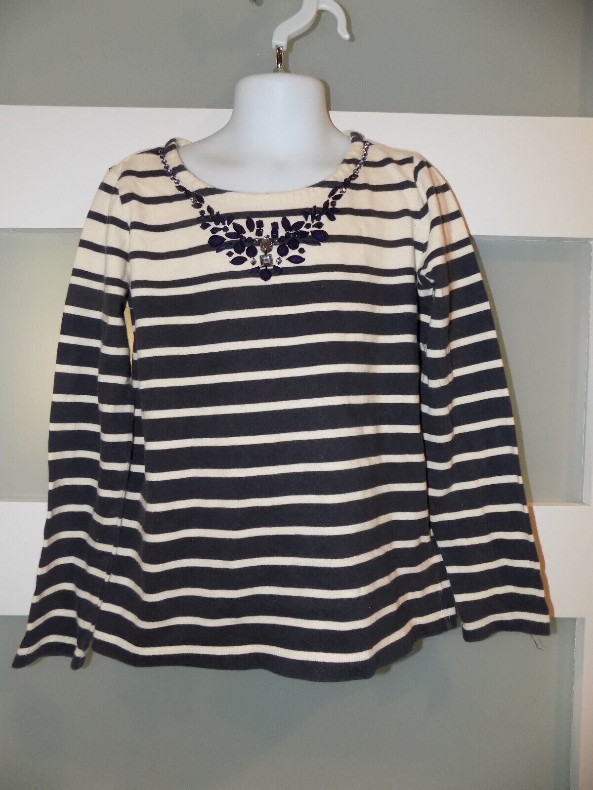 CREWCUTS JEWELED NAVY/CREAM LONG SLEEVE SHIRT SIZE 8 GIRL'S