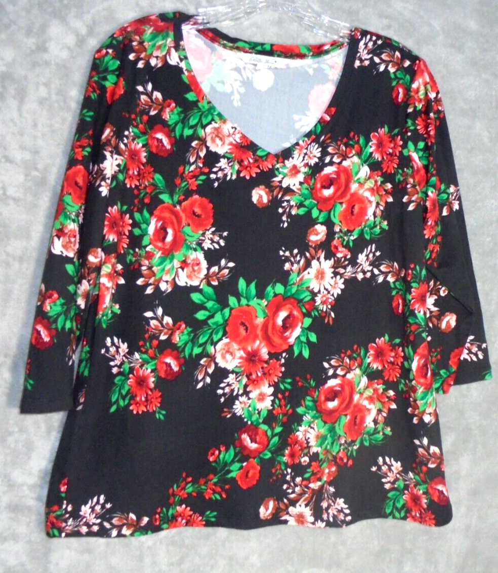 The Pioneer Woman Womens Small S Floral V-Neck Top Tunic 3/4 Sleeve Soft Stretch