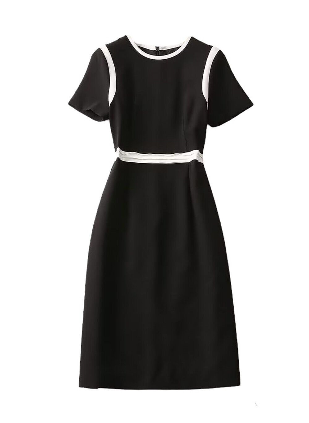 Our inspired version captures the essence of this iconic dress, allowing you to steal her impeccable look at Duchess On A Budget. Crafted with attention to detail, our rendition features a block of black around the waist and sleeves, creating a visually striking pattern that beautifully contours the slim frame of the British royal. Whether attending a wedding or a formal event, this dress promises to make a statement with its timeless elegance.