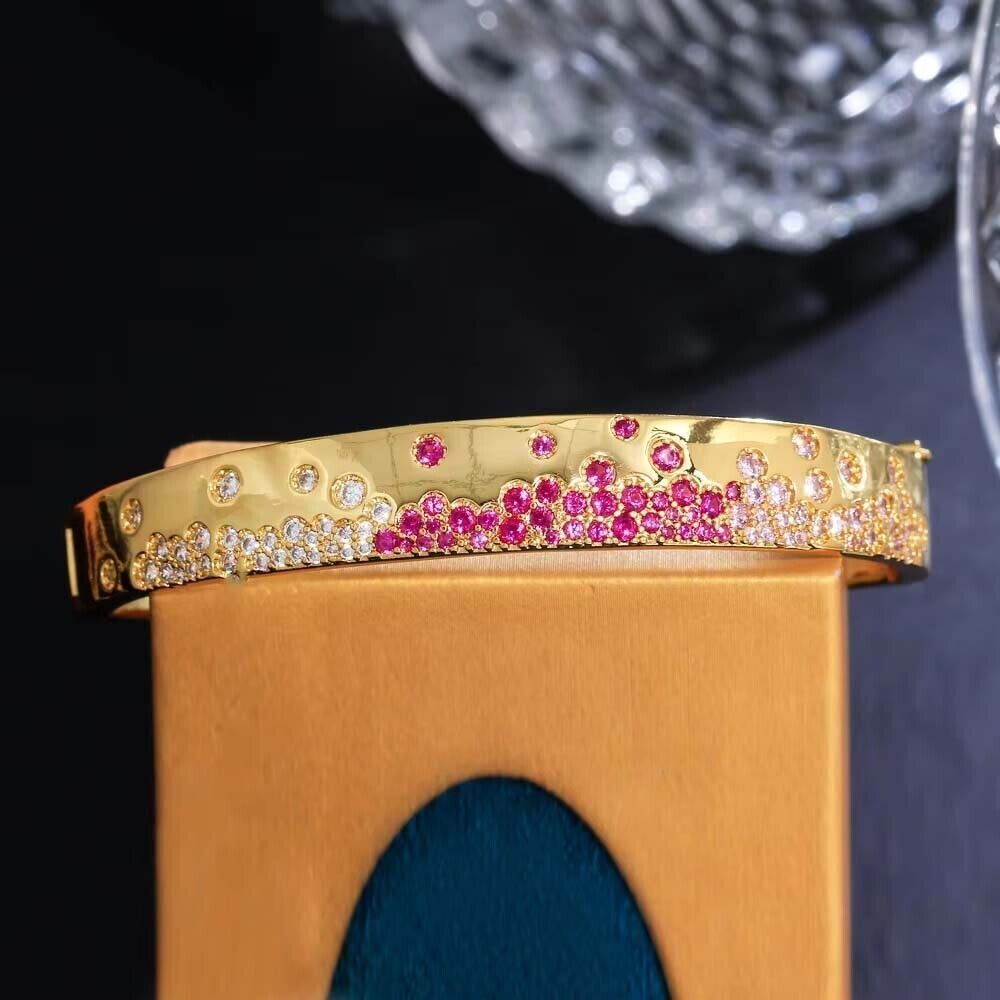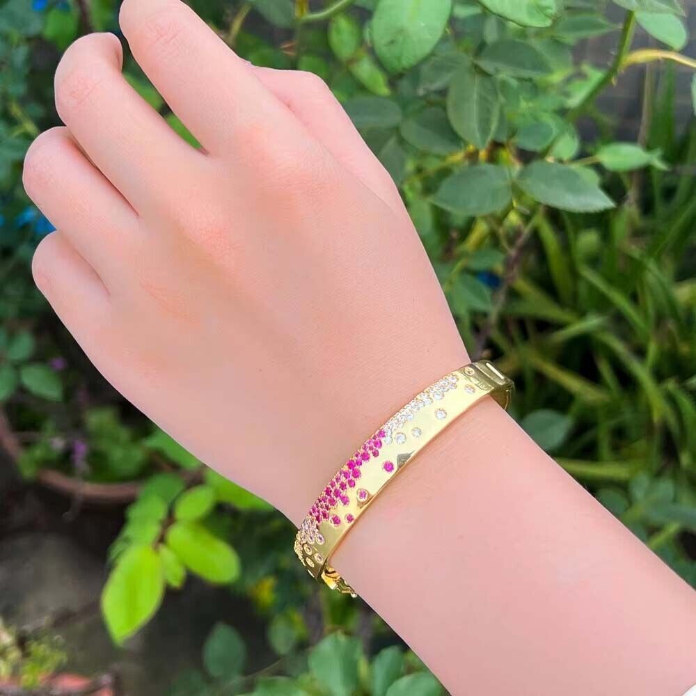 1.50Ct Lab Created Multi Color 14K Yellow Gold Over Open Cuff Bangle Bracelet 7"