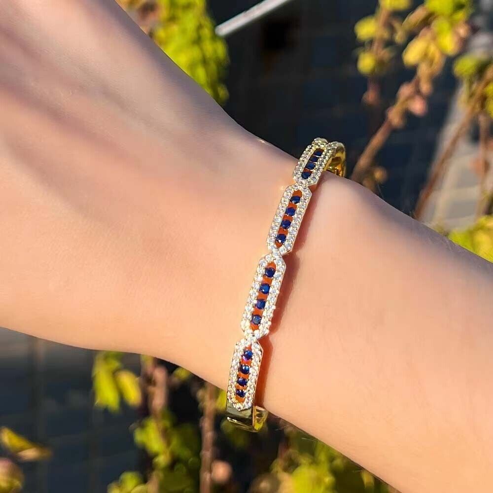 4.50 Ct Blue Sapphire & Diamond 14K Yellow Gold Plated Women Bangle Bracelets 7"