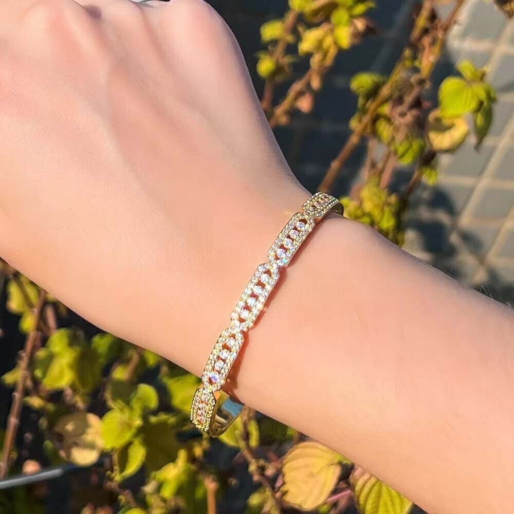 4.50 Ctw Lab Created Diamond 14K Yellow Gold Plated Women Bangle Bracelets 7"