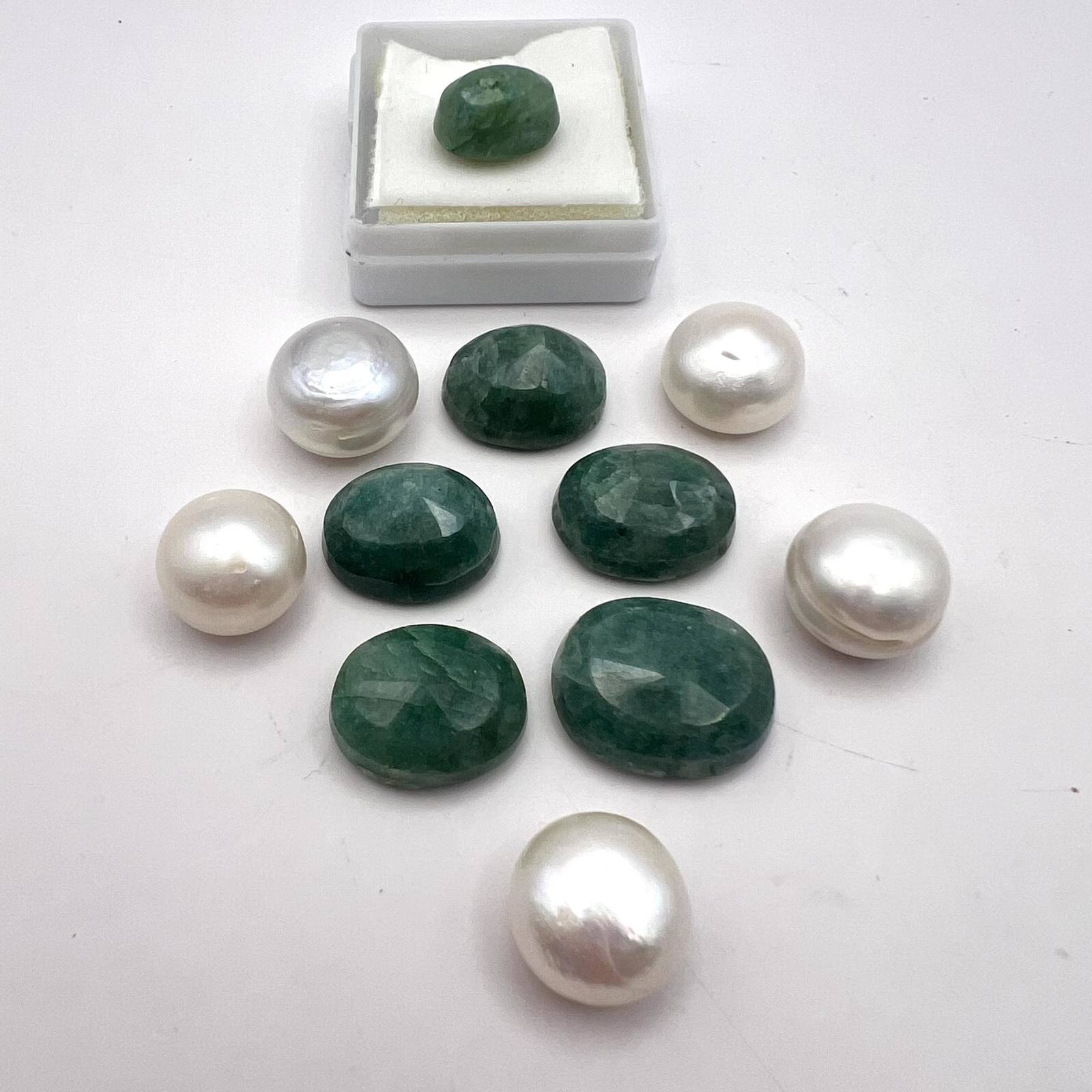Beryl Emerald 5.3Ct Natural Loose Gemstone Certificate + Lot of 10 Stones Pearls for Jewelry