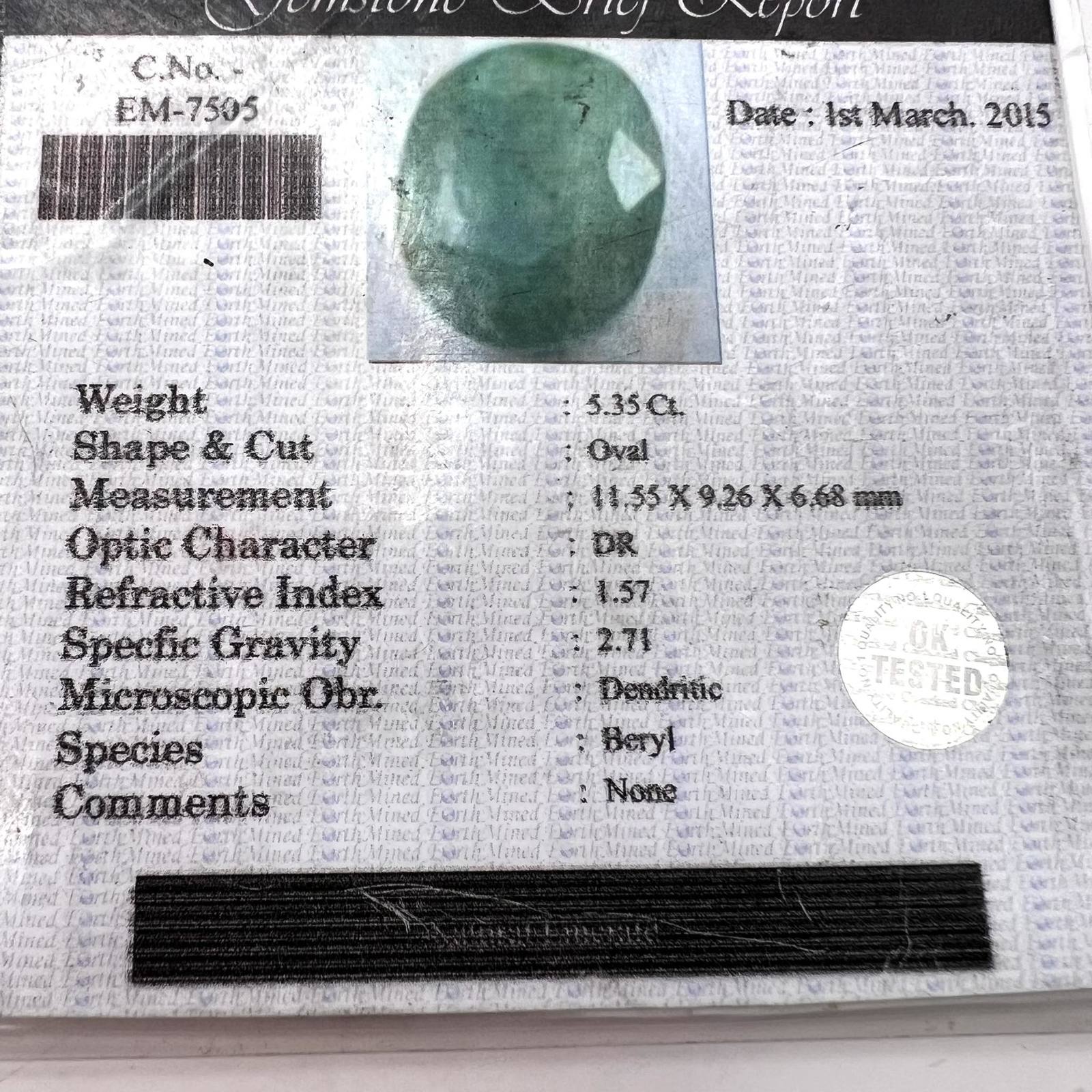 Beryl Emerald 5.3Ct Natural Loose Gemstone Certified + Lot of 10 Stones Pearls
