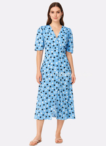 Kate Middleton Inspired Sky-Blue V-Neck Polka Dot Side Slit Midi Dress OZ Stock