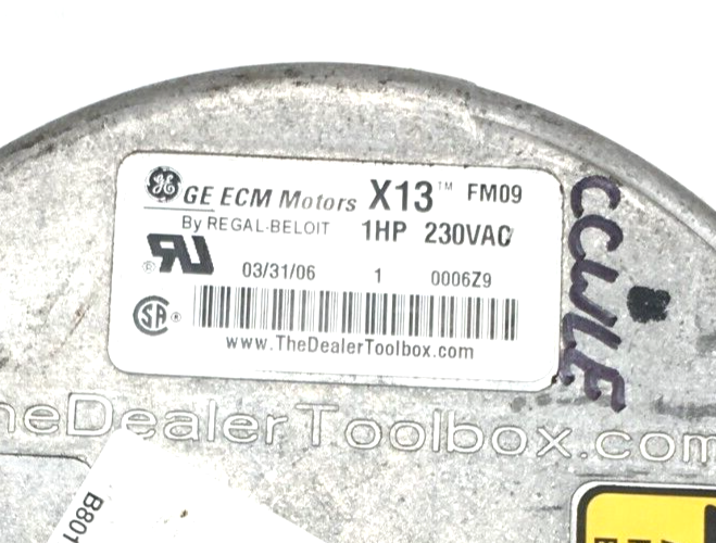 This is GE ECM X13 FM09 Blower Motor's Module 1HP 230VAC programmed CCW Lead End rotation and wired for D672366G26 used part. Motor not included, for sale is module only.