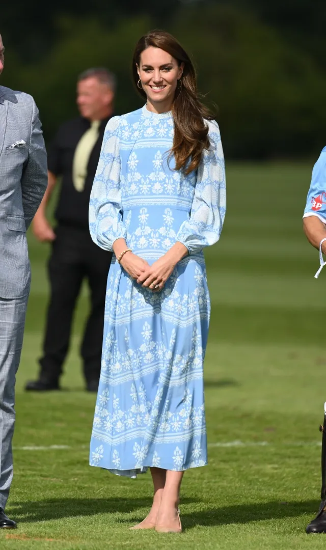 The Princess of Wales enthusiastically supported Prince William during a charity polo match in Windsor. She graced the occasion wearing a delightful blue-patterned dress that exuded a summery vibe. Interestingly, this floral dress was previously worn by Ivanka Trump.