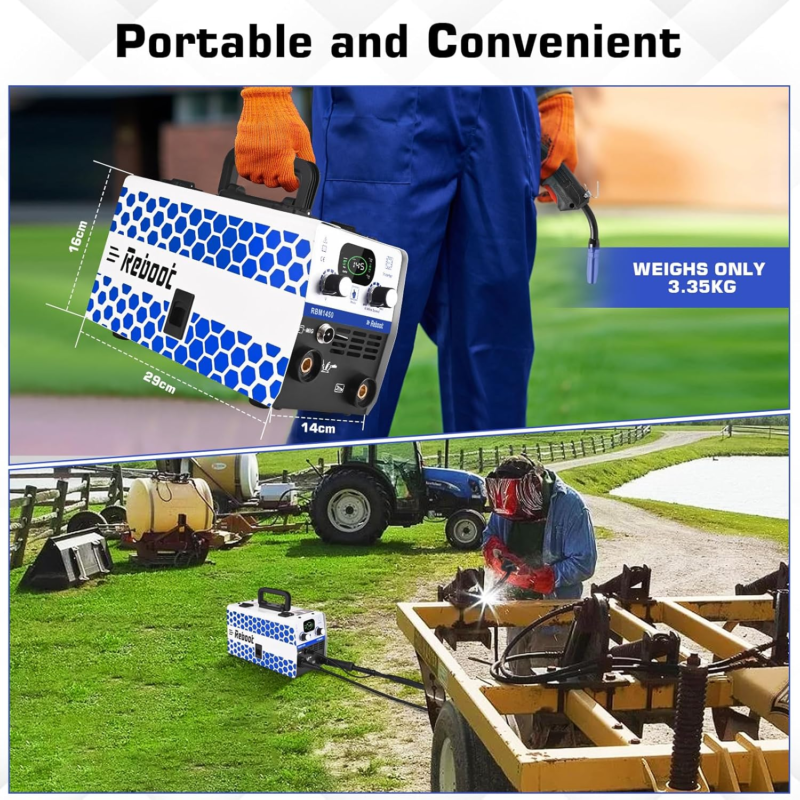 LIGHT WEIGHT AND PORTABLE: Welder weighs only 6.8 pounds, easy to carry it anywhere with a handle