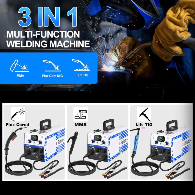 3 FUNCTIONS IN 1 MULTI-PROCESS WELDER, FLUX CORE/GASLESS MIG, MMA, LIFT TIG