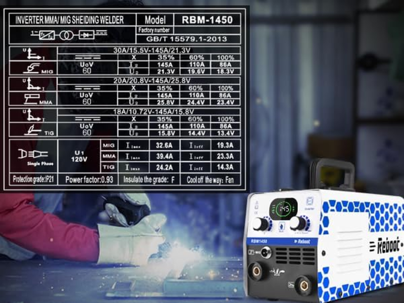 3 in 1 MIG Welder, Mig/Lift Tig/Stick Large LED Digital Display Welding Machine IGBT Inverter Welder RBM1450 with Synergy Portable.