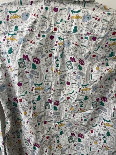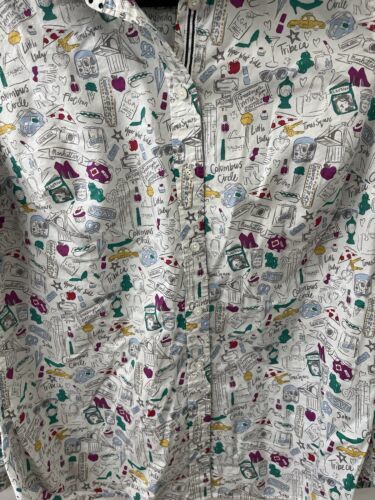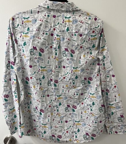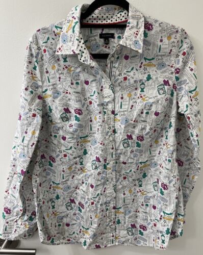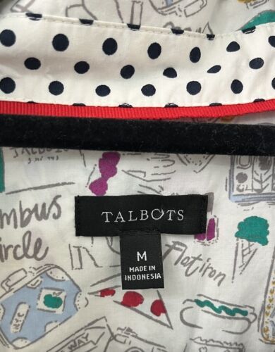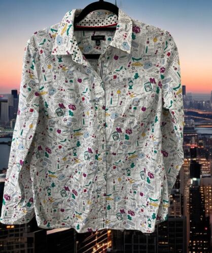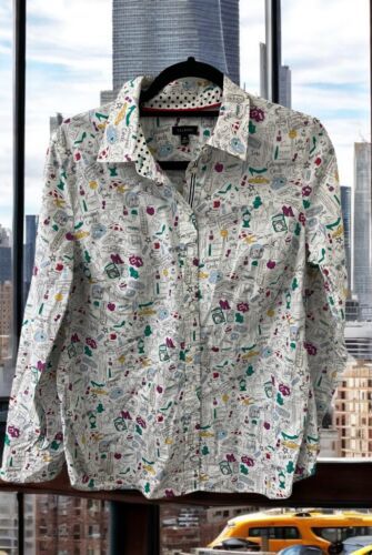Talbots Button Up Long Sleeve Blouse Shirt Top New York Landmark Doodle" Size M