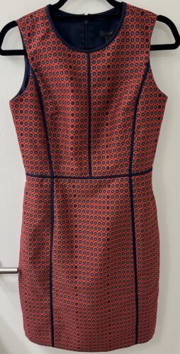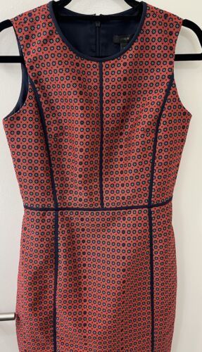 J. Crew Sleeveless Shift Dress Size 4 Business Casual Office Geo Pattern Fitted