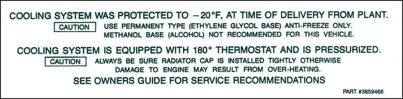 1962-1966 Chevrolet Impala 1965-1966 Protected Cooling System Caution Decal