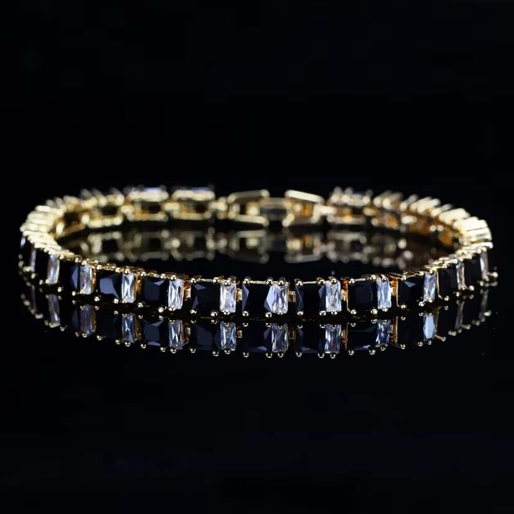 Lab Created Black & Diamond 14K Yellow Gold Plated Tennis Link Bracelets 7"