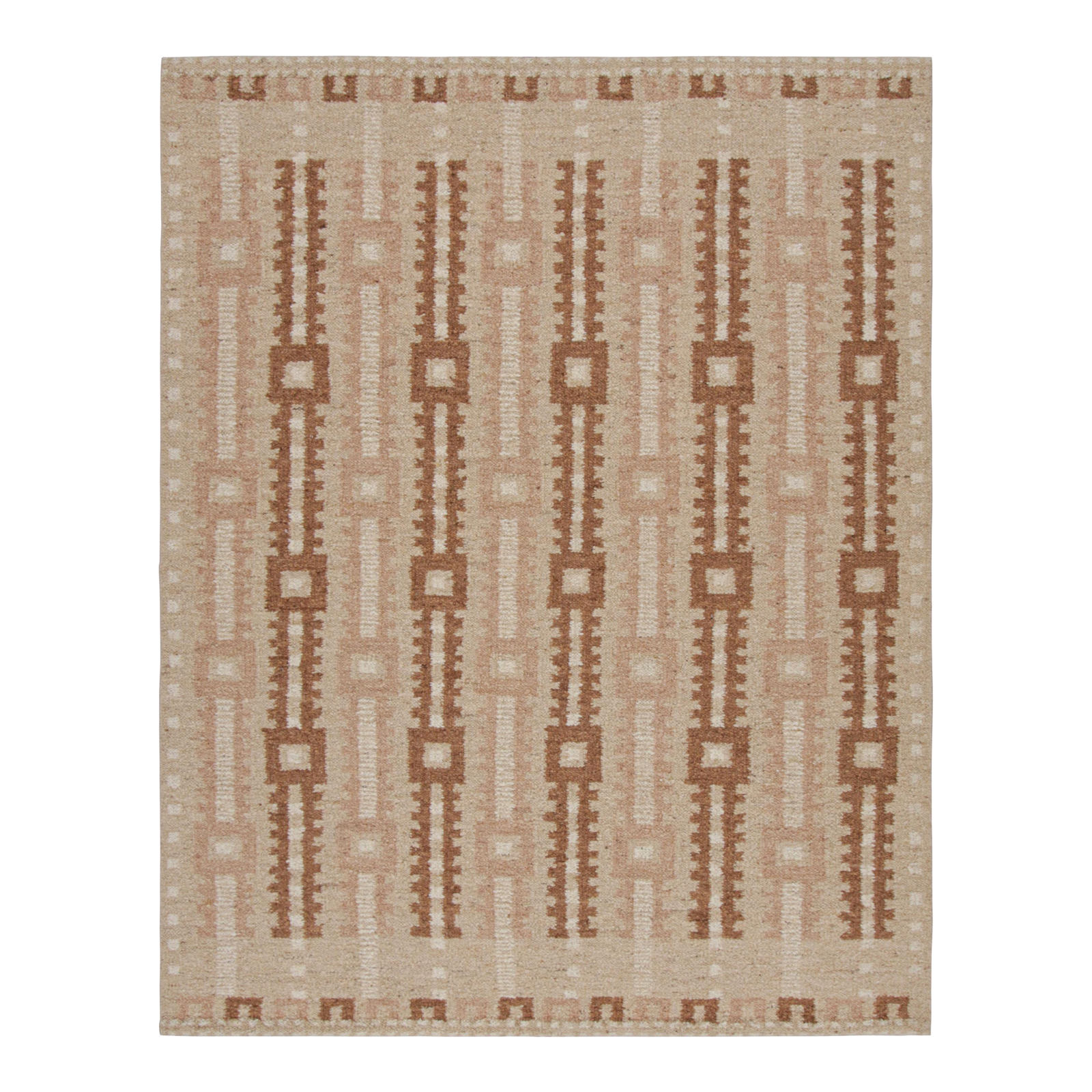 Handmade Wool Rug Scandinavian Style Rug With Pink, White and Beige-Brown Rug