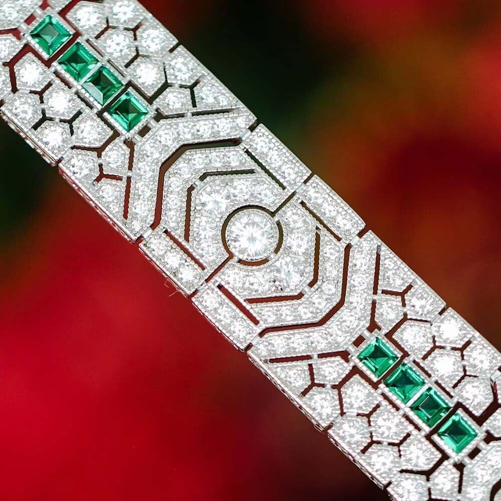 Lab Created Diamond & Emerald 14K White Gold Over Women's Antique Bracelet 7.25"