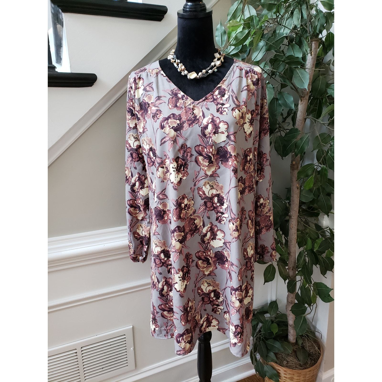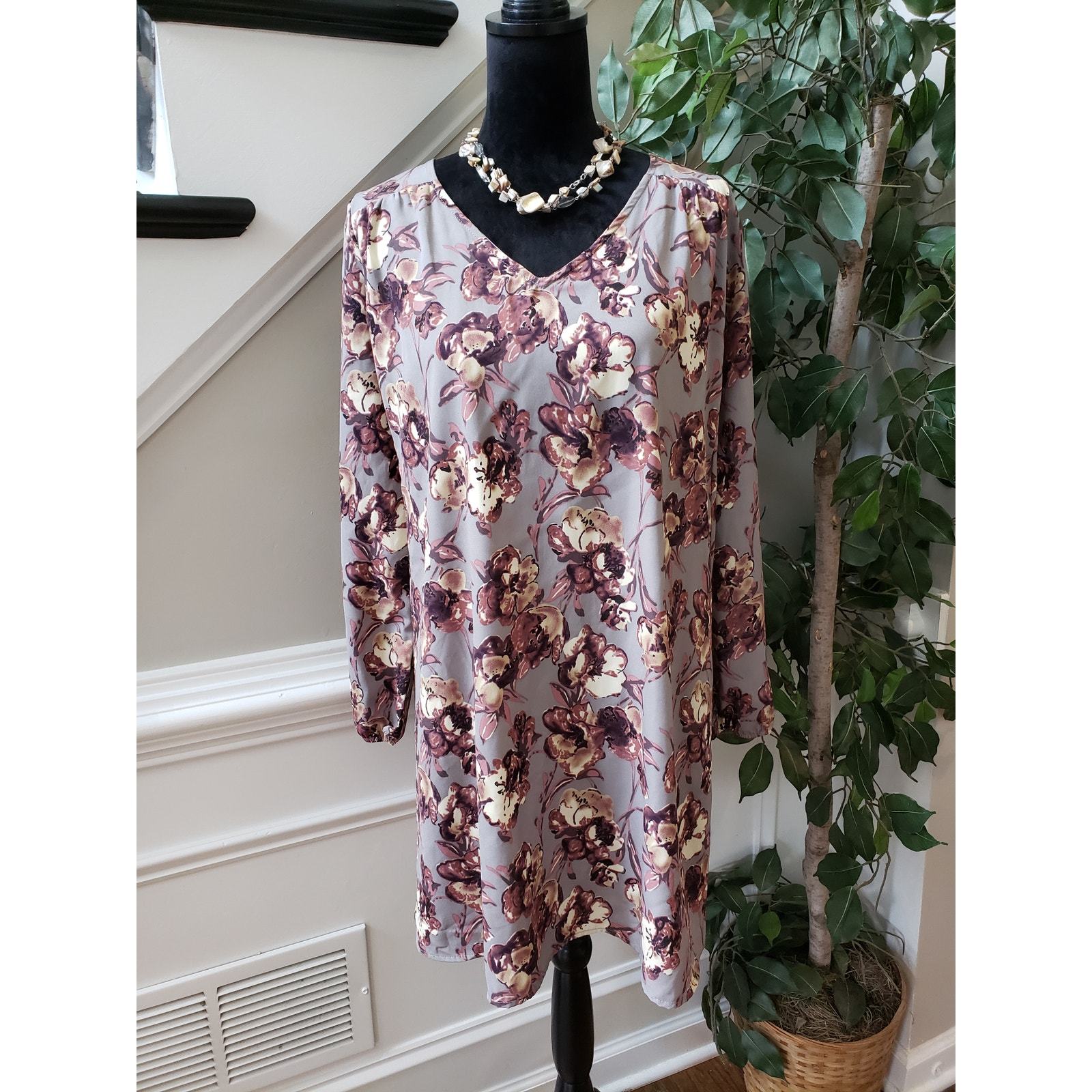 Peach Love Fit Flare Dress Women M Multi Floral Lined Keyhole Back Long Sleeve