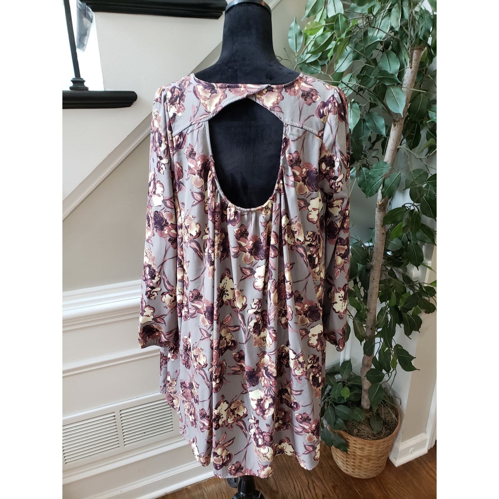 Peach Love Fit & Flare Dress Women M Multi Floral Lined Keyhole Back Long Sleeve