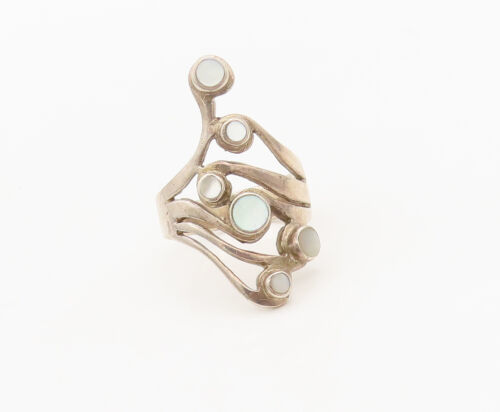 925 Silver - Vintage Designer Tree Root Inlay Abalone Split Ring Sz 10- RG27127