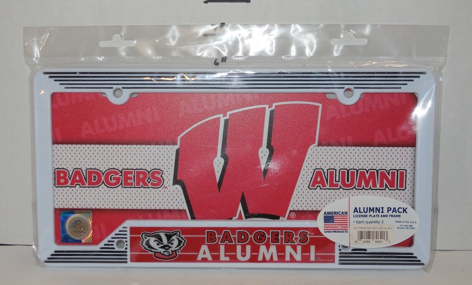 Wisconsin Badgers Auto License Plate & Frame NCAA College Alumni Pack