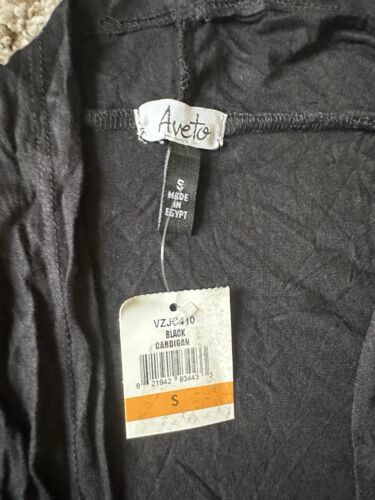 Aveto Womens Black Long Sleeve Open Front Midi Lenght Cardigan Size Small Casual. Condition is New with tags. Shipped with USPS Ground Advantage.