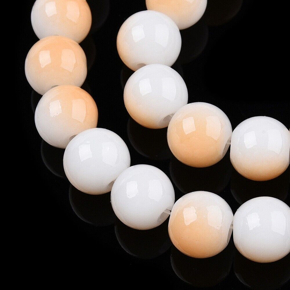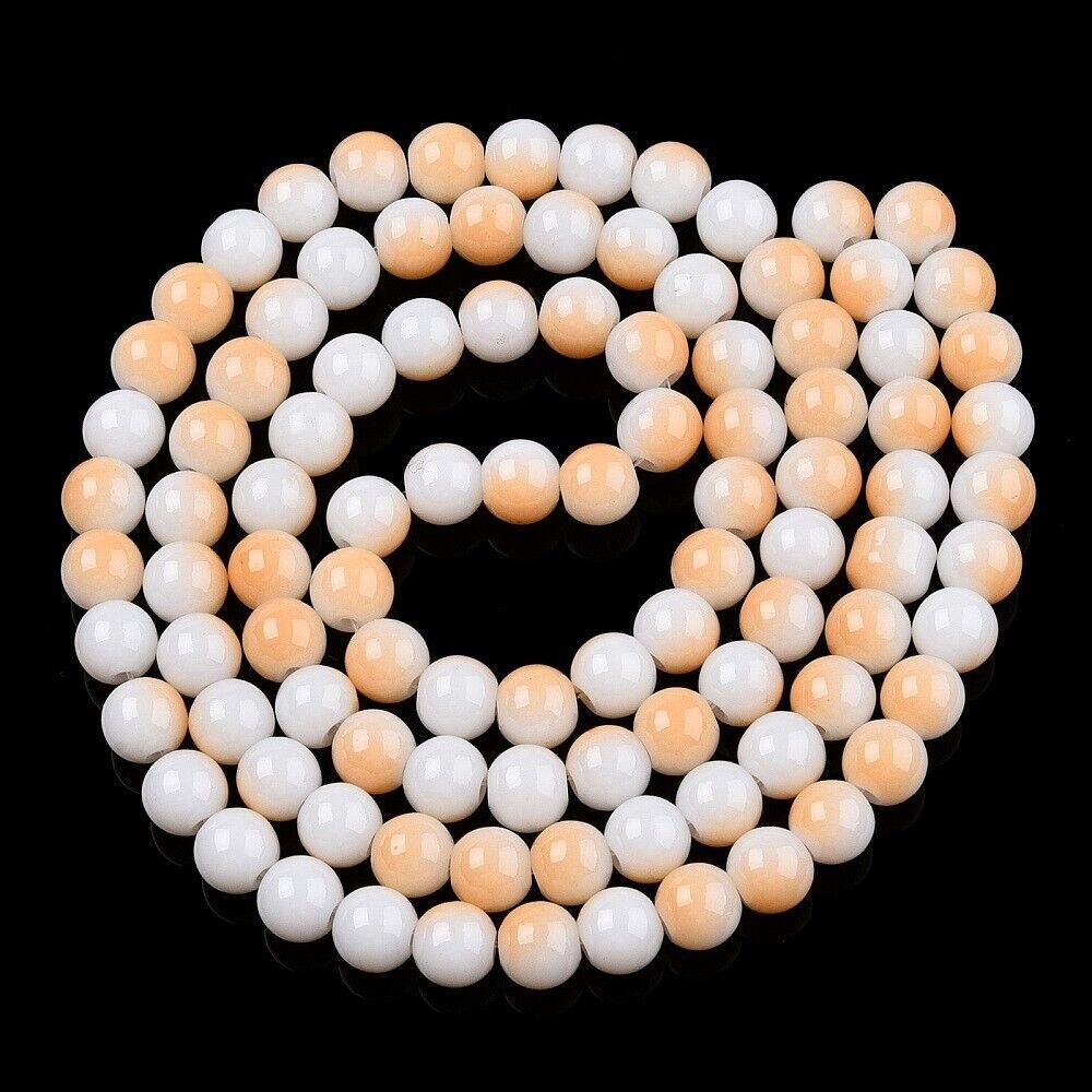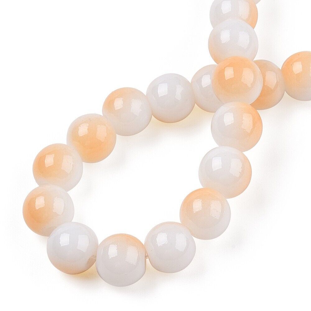 Description: Two Tone Opaque Baking Painted Glass Beads Strands, Round, PeachPuff