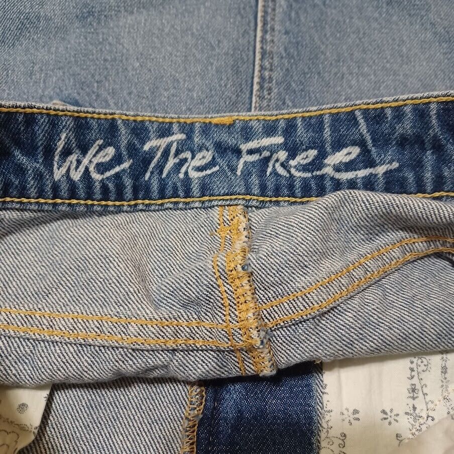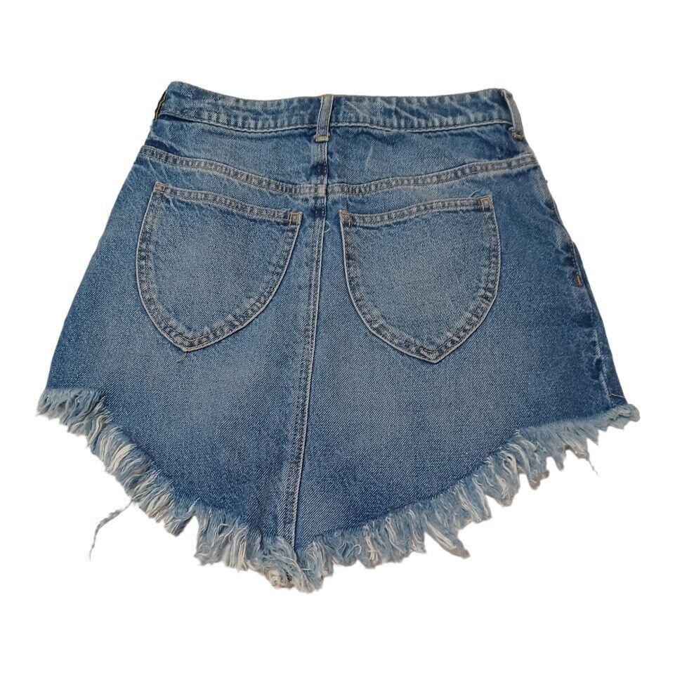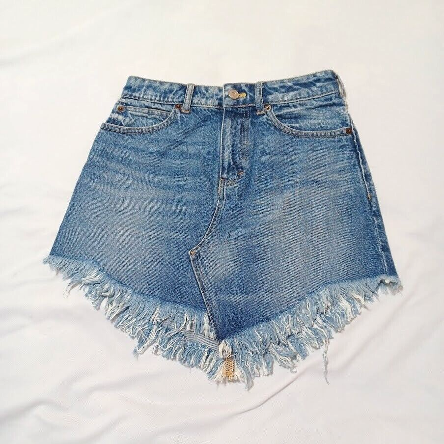 We the Free, Free People Bailey High Waist Frayed Bottom Mini Jean Denim Skirt Size 24 (waist size approx 26 inches)