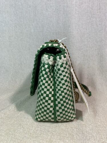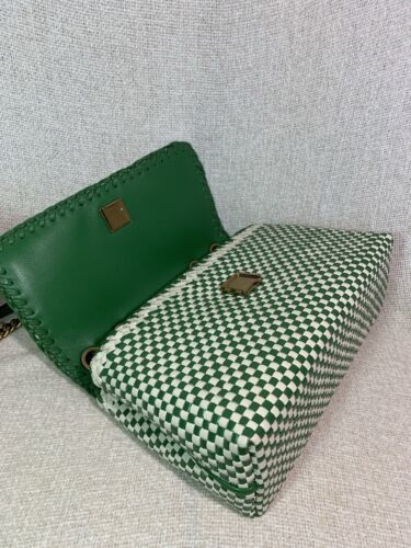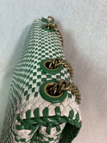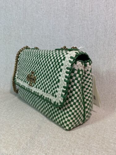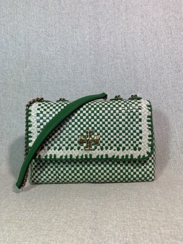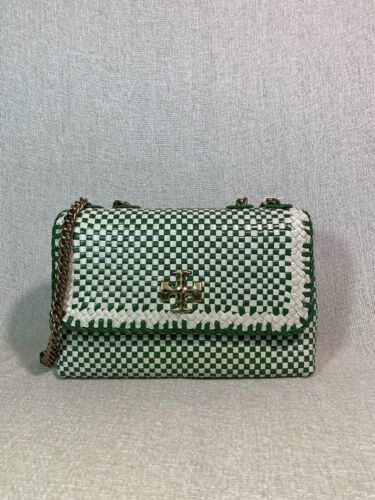 You Are Looking At An Adorable Small Basil Green Woven Leather Kira Convertible Shoulder Bag/Cross Body Bag By Tory Burch