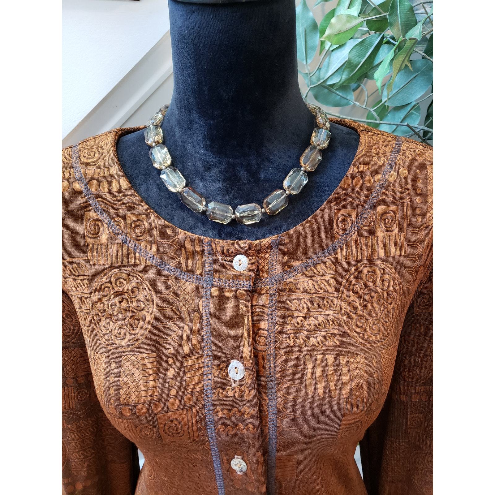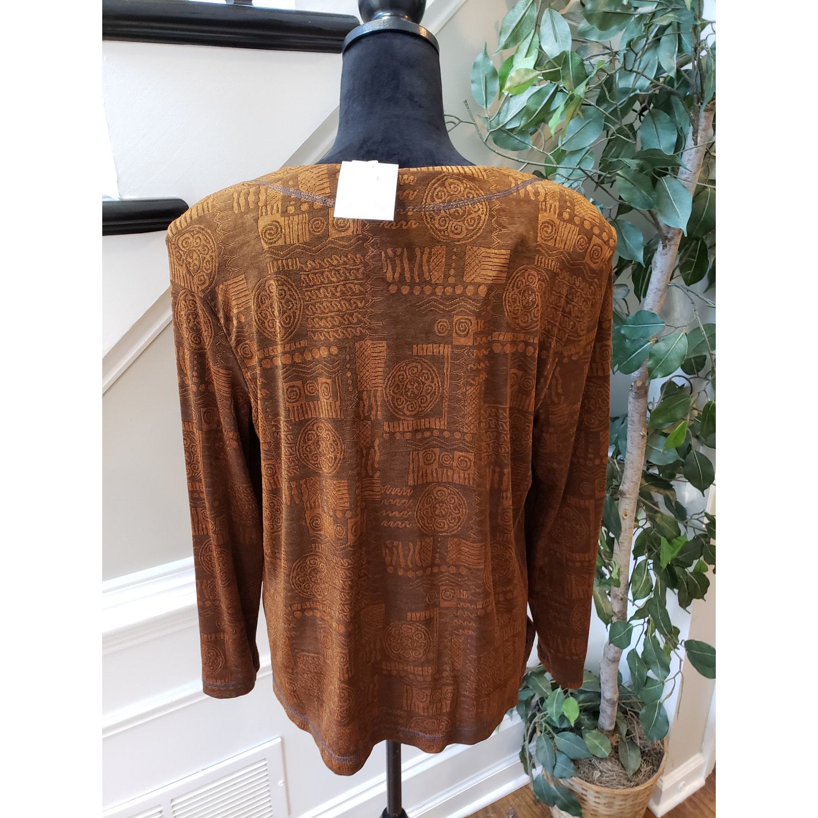 Coldwater Creek Jacket Womens 12 Brown Jacquard Stretch Long Sleeve Button Front