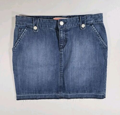 GAP Women's Denim Jean Skirt Size 4 99% Cotton 1% Spandex Raw Hem Buttons